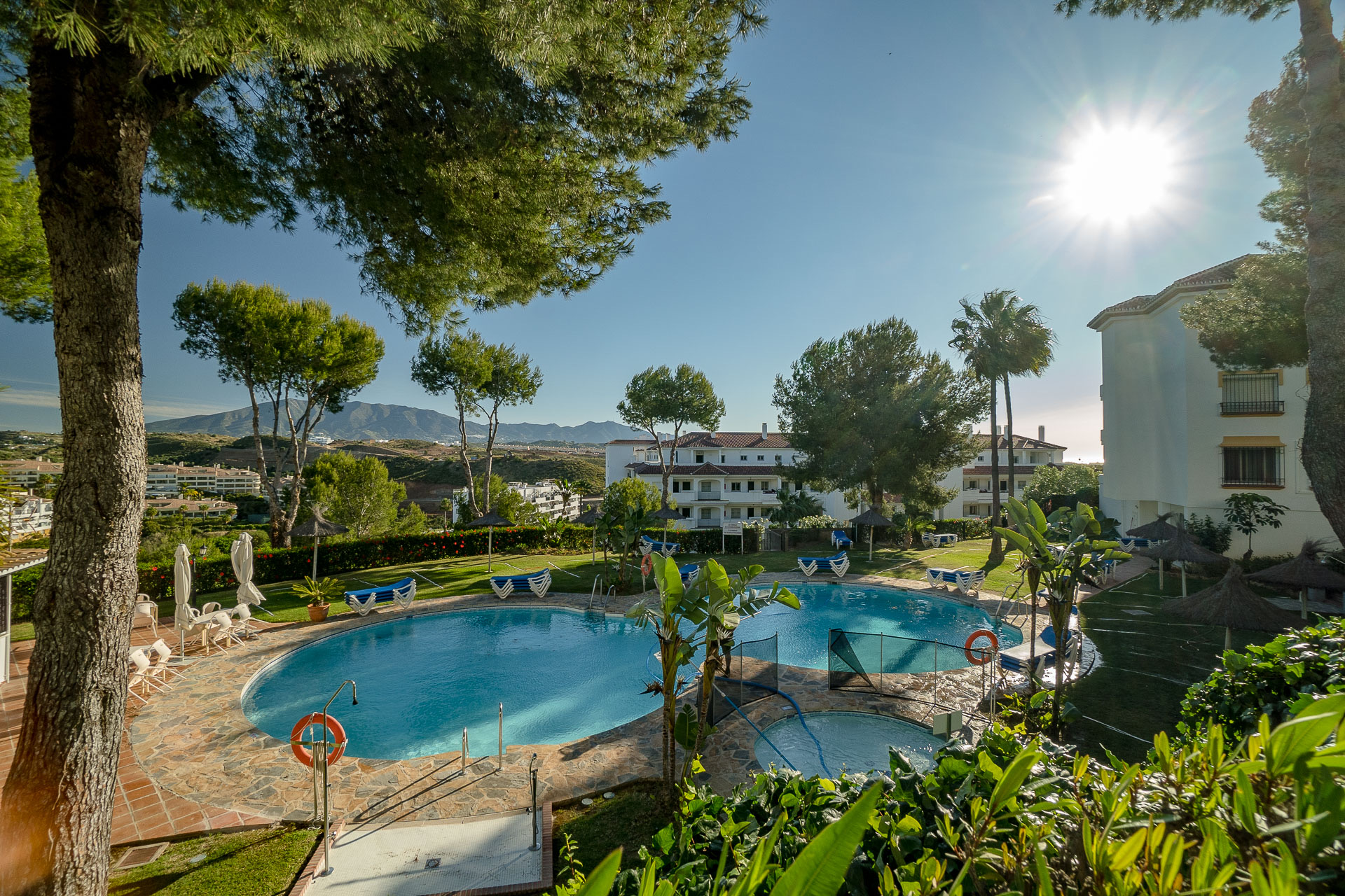 La urbanización cuenta con zona ajardinada y piscinas exteriores con zona de relax.